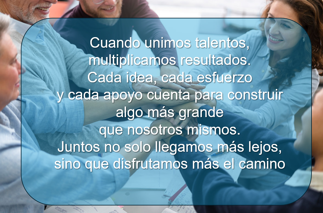 Cuando unimos talentos, multiplicamos resultados. Cada idea, cada esfuerzo y cada apoyo cuenta para construir algo más grande que nosotros mismos.